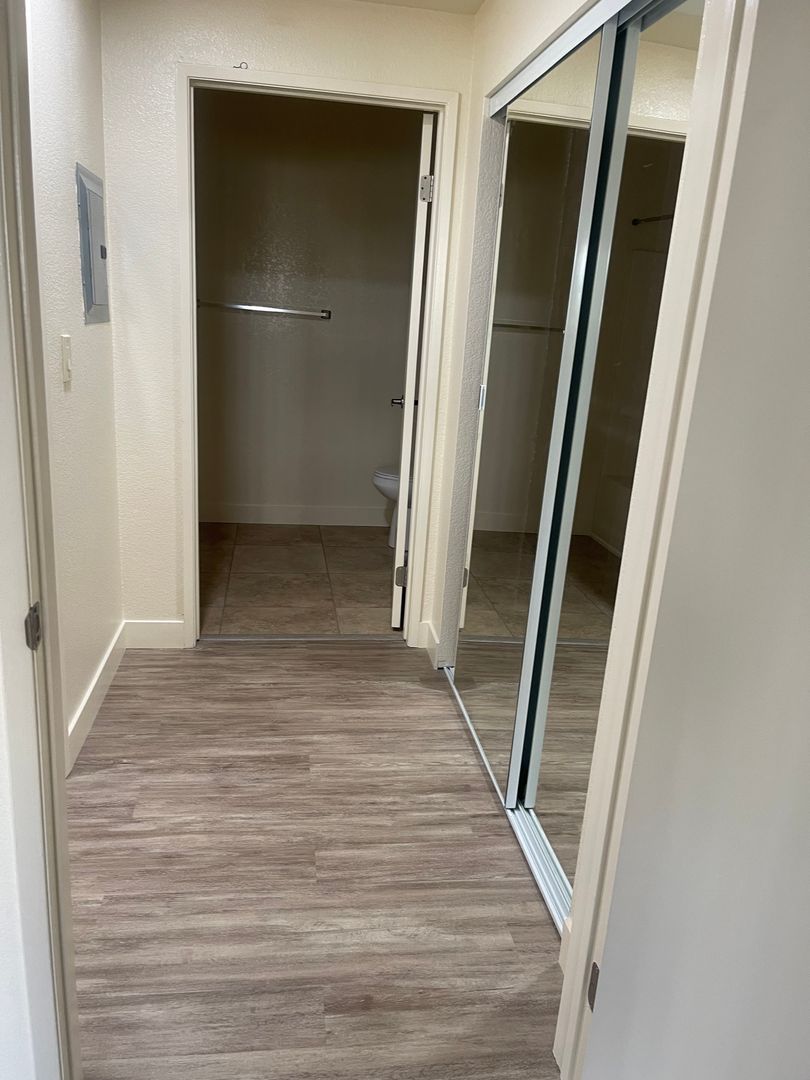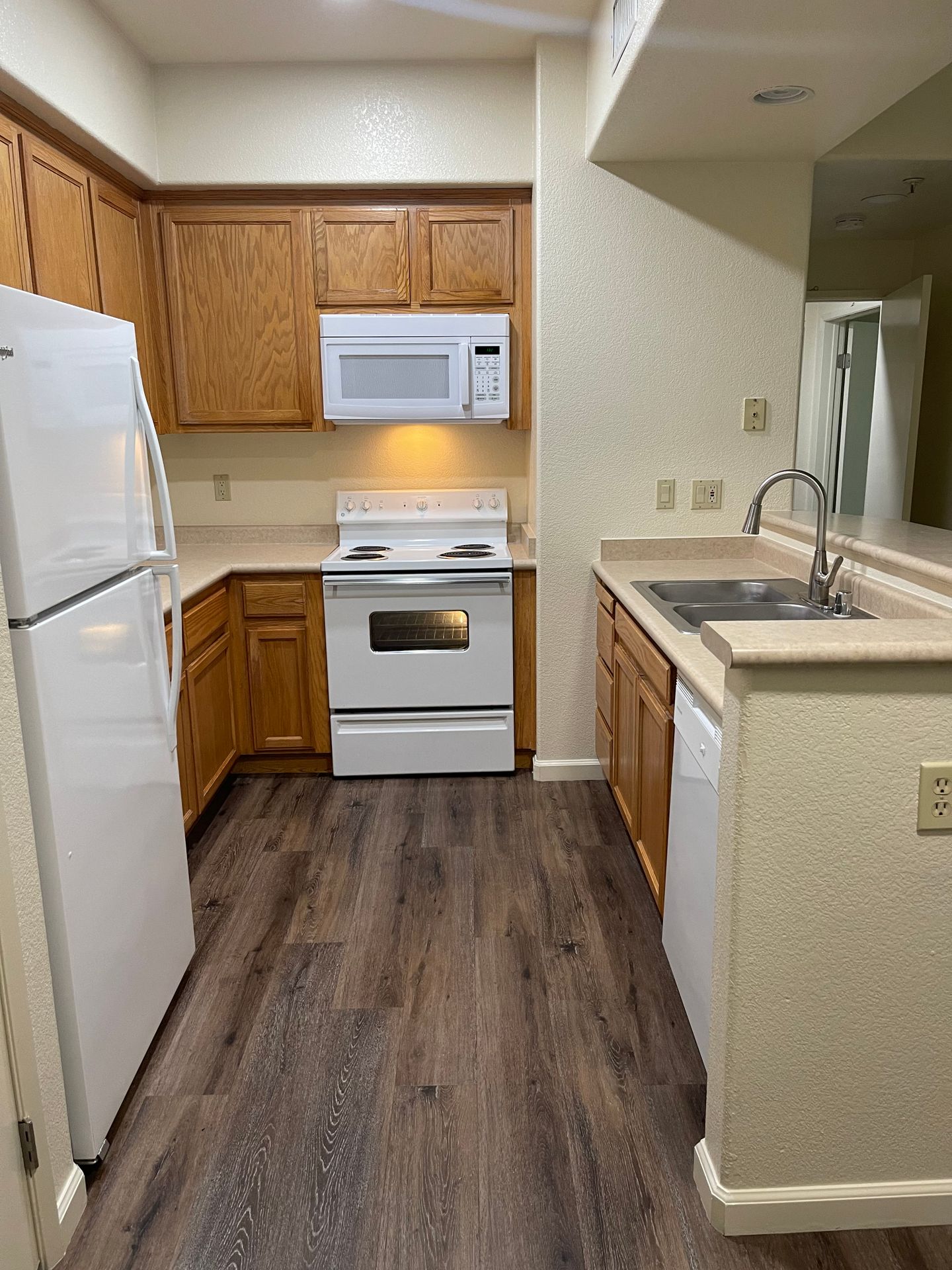 Our 1 bedroom apartment homes offer rustic laminate wood flooring, high ceilings, gas fireplace, central heat and air, full size washer and dryer in every unit. The kitchen is open and includes full size refrigerator, dishwasher, microwave, electric range and disposals. Patios and balconies are accessible from the living rooms and master bedrooms. Private patio that over look the creek. This is a ground level unit, conveniently located minutes from the pool, spa, fitness room, mail center and leasing office. Application link: https://www.on-site.com/apply/property/47661